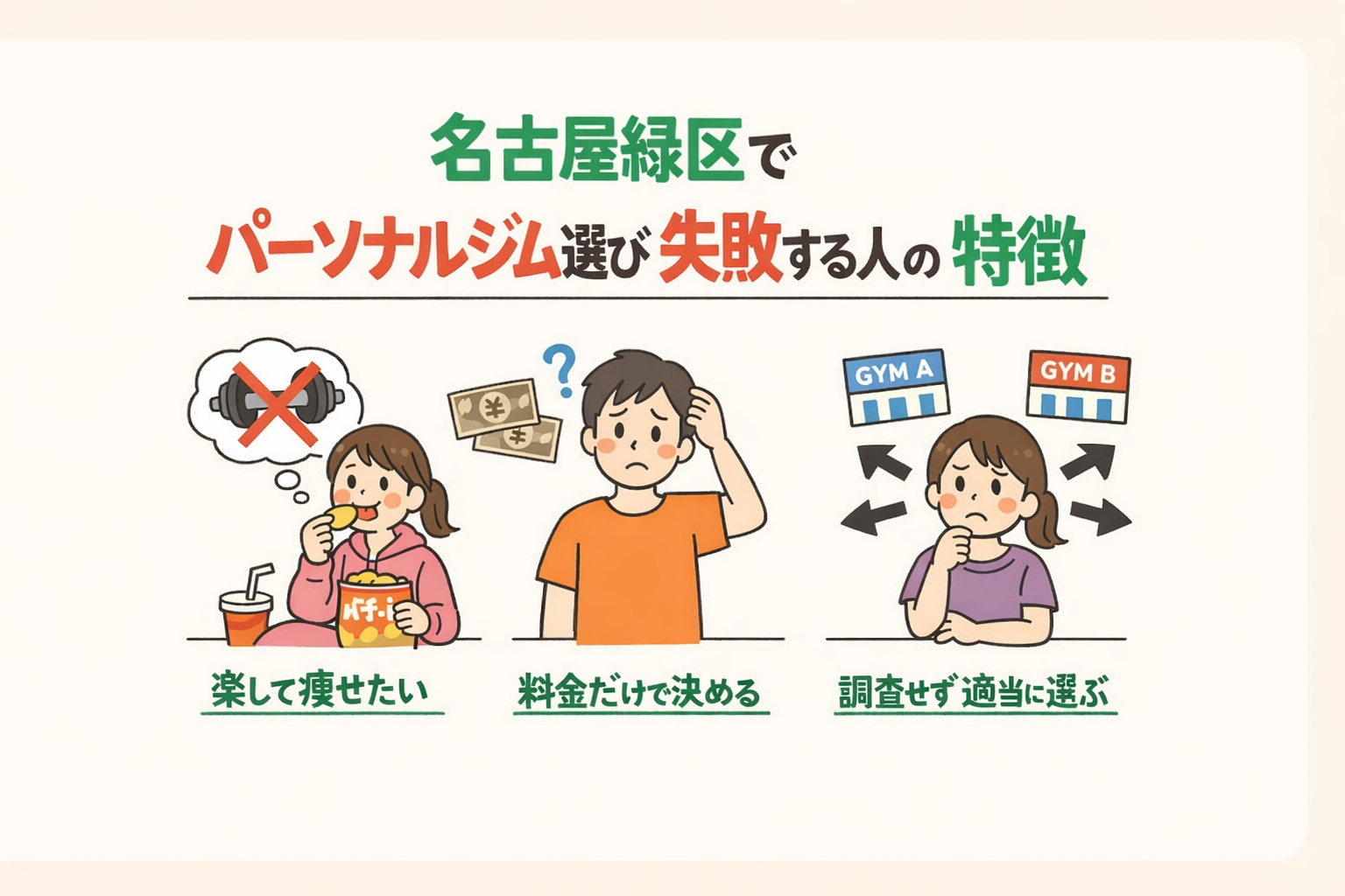 この記事では、名古屋緑区でパーソナルジム選びに失敗する人の特徴と、