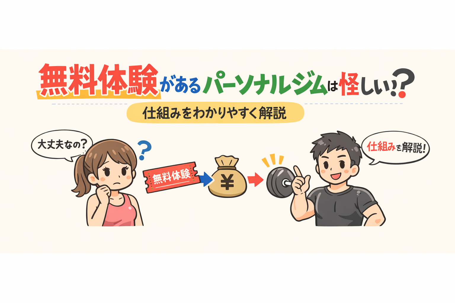 この記事では、無料体験があるパーソナルジムが“怪しい”と言われる理由と、 実際の仕組みを分かりやすく解説します。