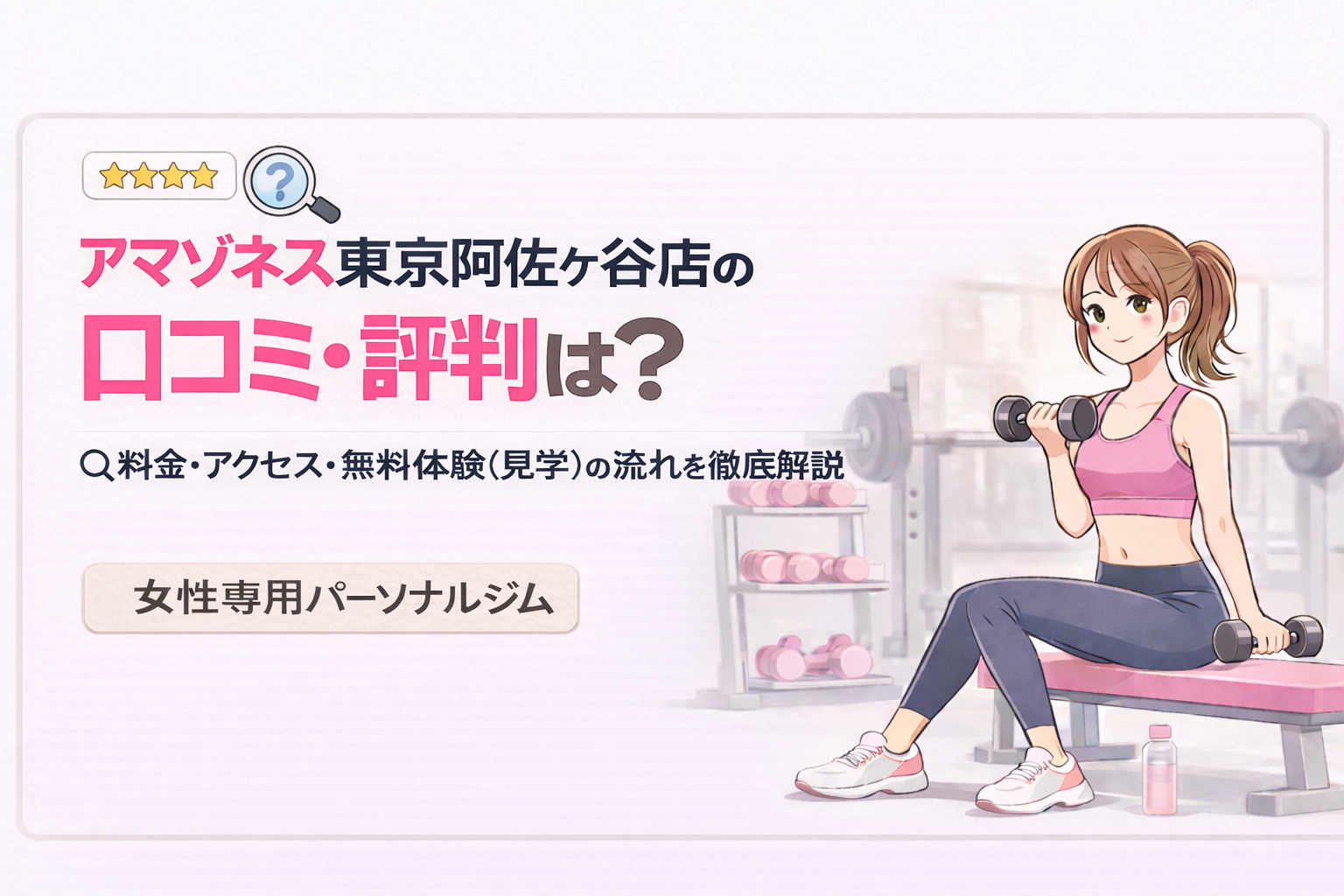 そんな不安を持つ女性に向けて、この記事では アマゾネス東京阿佐ヶ谷店の口コミ・評判、料金、特徴、無料体験(見学)の内容を、 ジム通いが久しぶりの方でも分かりやすくまとめました。
