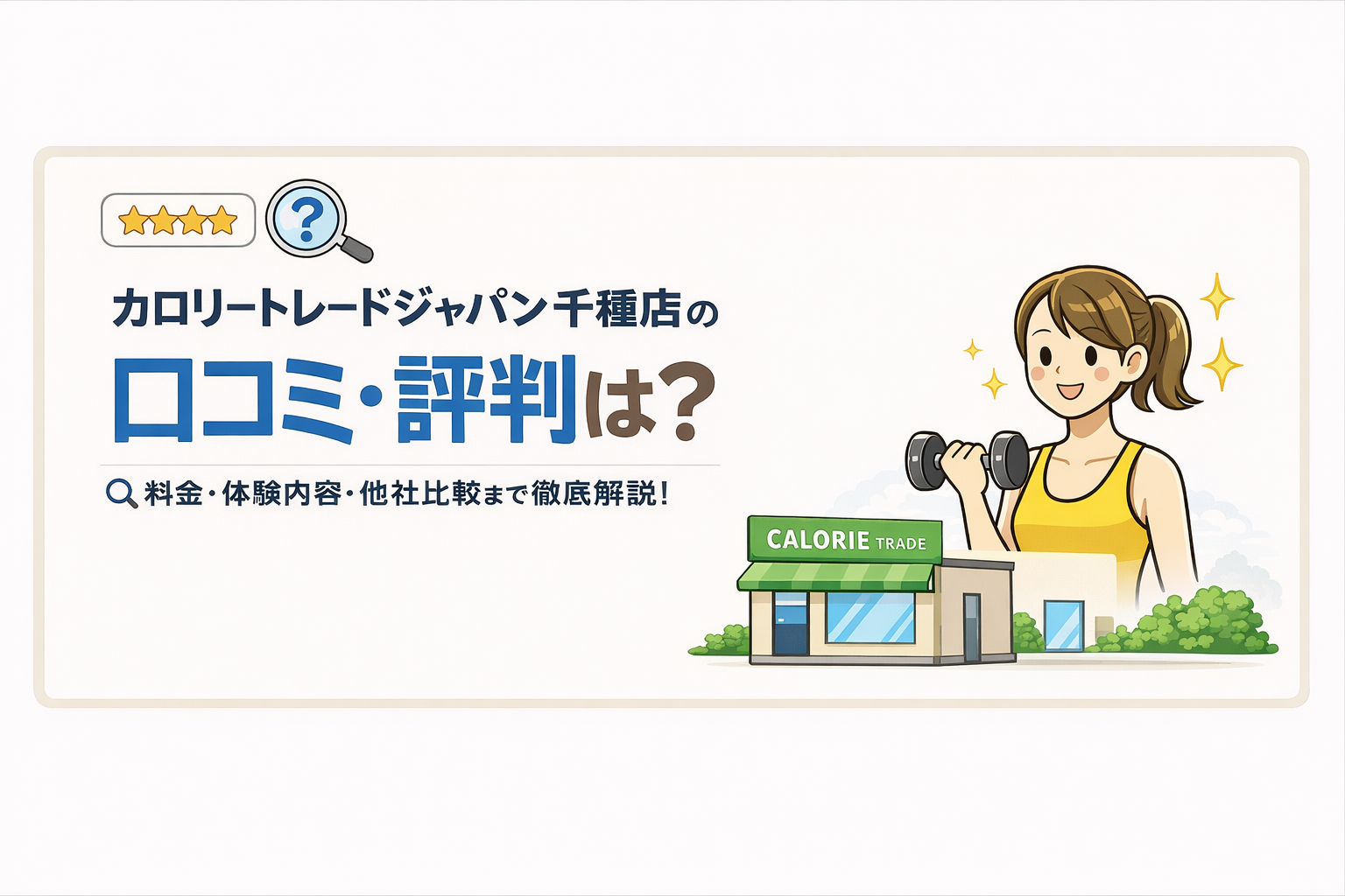 そんな不安を持つ女性に向けて、この記事では カロリートレードジャパン千種店の口コミ・評判、料金、特徴、無料体験の内容を、 はじめての人にも分かりやすくまとめました。